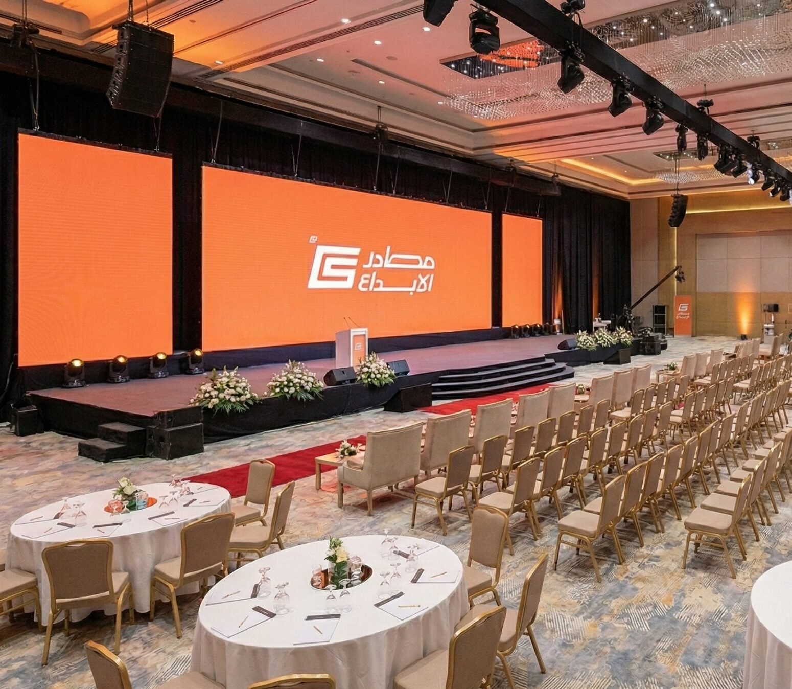 نقوم بتنظيم المؤتمرات، المعارض، الفعاليات الداخلية للشركات، حفلات الإطلاق، الاحتفالات الرسمية، وفعاليات الضيافة.